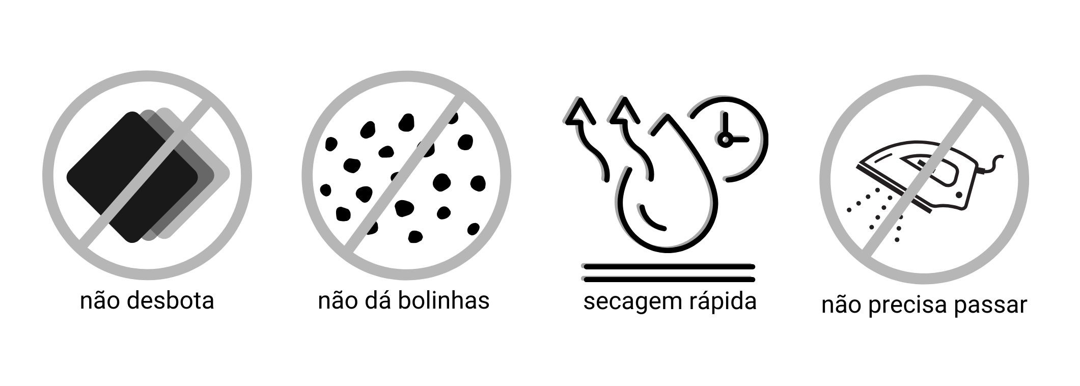 Durável e resistente, não desbota, não cria pilling (aquelas bolinhas indesejáveis) e não encolhe após a lavagem, mantendo a aparência nova por muito mais tempo. Lavagem e secagem fácil e rápida. Não precisa passar, pois ela desamassa, em poucos minutos, no corpo.